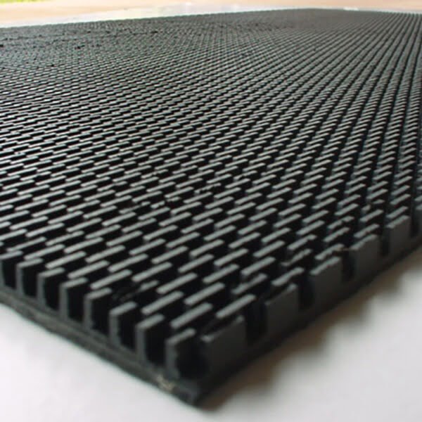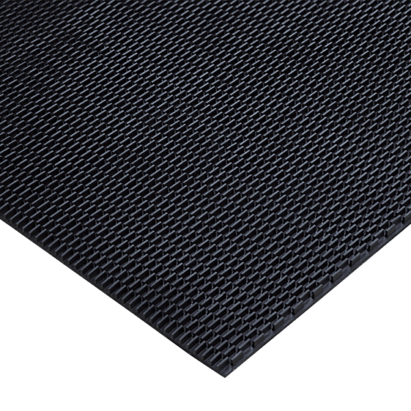 Soft rubber inter-woven plates form a unique design with great cleaning efficiency and good anti-fatigue properties. Traps grit and sand within design and does not allow tracking.